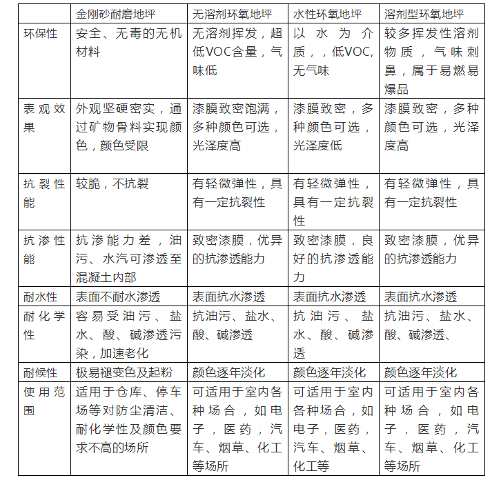 環(huán)氧地坪是由高性能環(huán)氧樹脂及固化劑組成,是一種整體無縫、高強度、美觀的地面保護系統(tǒng)。根據(jù)不同的工藝與材料,大致分為:環(huán)氧磨石地坪、環(huán)氧彩砂地坪、環(huán)氧薄涂地坪、環(huán)氧自流平地坪、環(huán)氧防靜電地坪、環(huán)氧耐腐蝕地坪、水性環(huán)氧地坪系列等。
