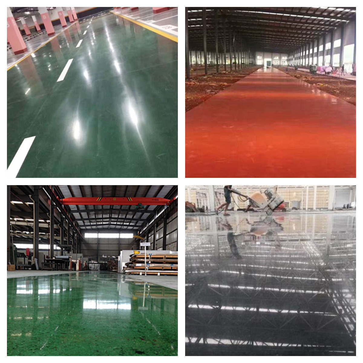 密封固化劑地坪、金剛砂地坪、彩色水泥自流平地坪、無機(jī)磨石地坪、水磨石地坪、鋼化地坪。