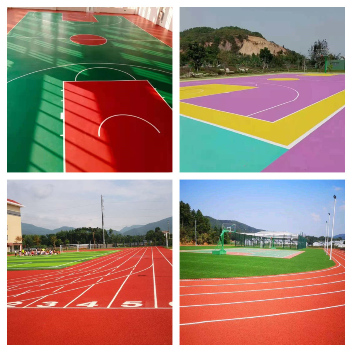 丙烯酸球場地坪、聚氨脂球場地坪、硅PU球場地坪、EPDM塑膠跑道、全塑型塑膠跑道、混合型塑膠跑道、自結(jié)紋塑膠跑道。