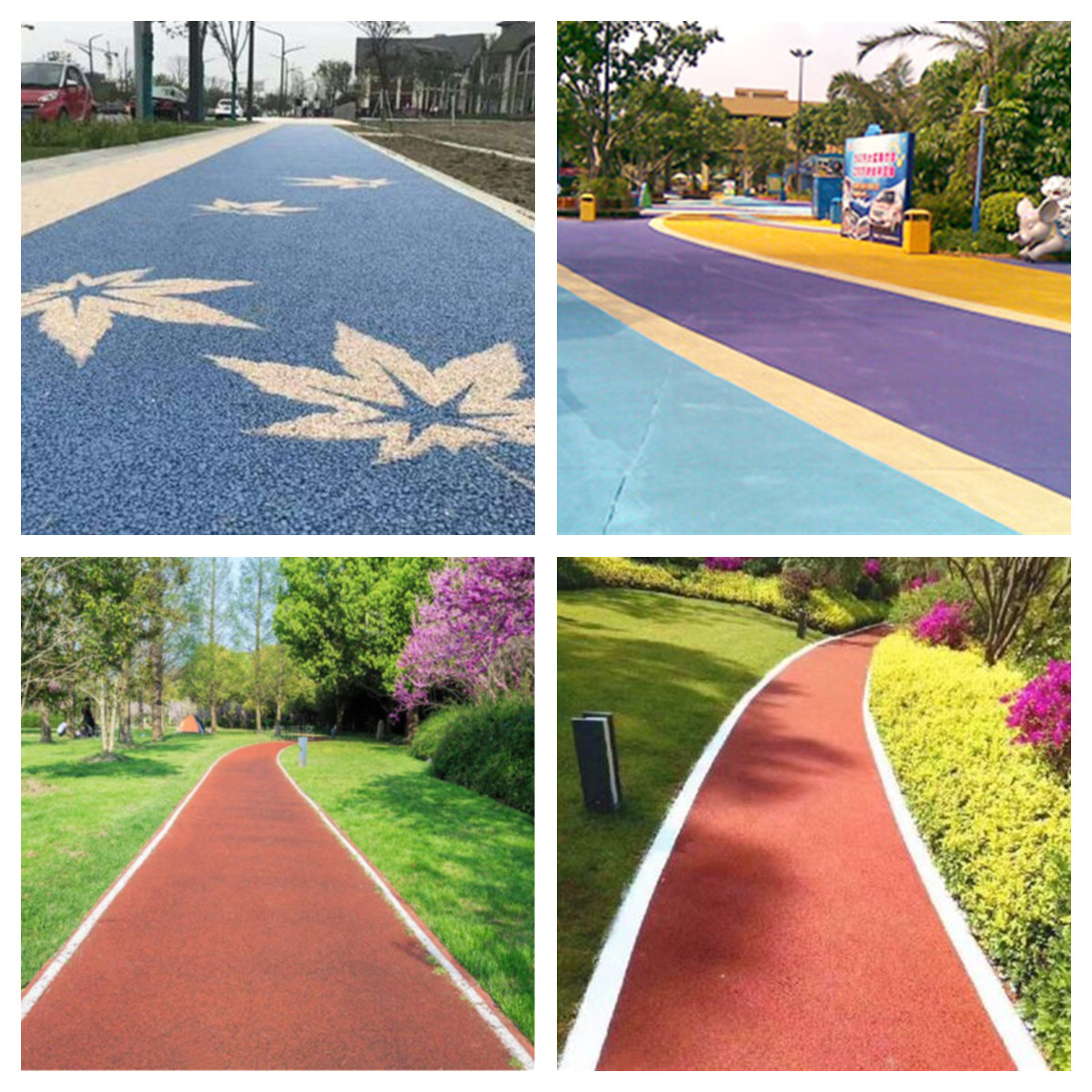 彩色透水地坪、瀝青改色地坪、陶瓷顆粒地坪、膠沾石地坪。