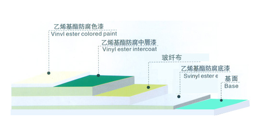 乙烯基酯重防腐地坪特性:乙烯酯樹脂具有環(huán)氧樹脂優(yōu)越之物理性能且兼具不飽和聚酯之快速硬化、簡易便捷之加工成型性、耐化學(xué)性優(yōu)異,面對大部分酸堿溶劑環(huán)境下均能展現(xiàn)出優(yōu)越之耐蝕性。